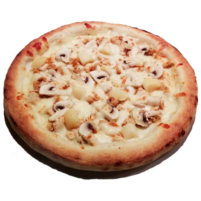 creme fraiche, fromage 100% mozzarella, poulet, champignons frais, p.de terre, mais