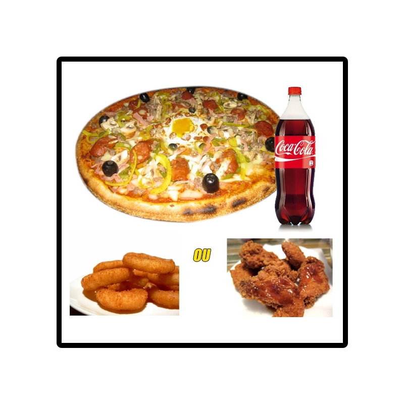 1 pizza Méga au choix + un Tex-Mex familial+ 1 bouteille de Coca 1.5L